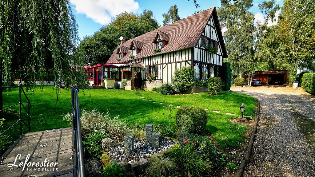 A 15 minutes au nord de Rouen, capitale historique de la Normandie, cette propriété normande a été construite dans un parc de 5000 mètres carrés ; parc clos, arboré et fleuri avec soin. A 5 minutes en voiture de la gare, des commerces, des services et du collège de la petite ville de Montville, l'accès rapide à l'autoroute A186 permet de rejoindre les quais de Rouen en moins de 15 minutes en voiture. Les lycées de la vallée du Cailly et la faculté de Mont-Saint-Aignan sont pour les adolescents et jeunes adultes d'excellentes opportunités pour se former. Pour les parents, l'activité économique dense et prospère de la région nord de Rouen est une sécurité pour trouver du travail ou de nouveaux marchés. Dans la grande dépendance à usage de garage, d'atelier et de cave, un autoentrepreneur peut aisément aménager un bureau indépendant pour y travailler ou recevoir ses clients. La maison de famille compte quatre chambres et une salle de bains à l'étage. Au rez-de-chaussée, le salon avec sa belle cheminée à l'âtre est parfait pour recevoir ses amis. La grande véranda construite est venue augmenter généreusement la surface de réception. Mais mieux encore, une magnifique cuisine contemporaine a été récemment créée pour profiter du décor et de la lumière extérieurs. En effet, les larges et élégantes baies vitrées métalliques apportent une touche décorative très tendance, comme dans un loft urbain. Mais le point de cette propriété set sa piscine couverte et chauffée par une pompe à chaleur. Dans une bâtisse en ossature bois de 120 m2, cette piscine est le royaume des enfants et des petits enfants. Un corridor de style normand lie cette piscine à la véranda de la maison sans passer par le jardin. Exceptionnel !Proche de Rouen, sur la route de la Côte d'Albâtre et de la ville portuaire de Dieppe, cette propriété normande à vendre attend la famille active et connectée au monde moderne, tout en profitant pleinement du confort contemporain !