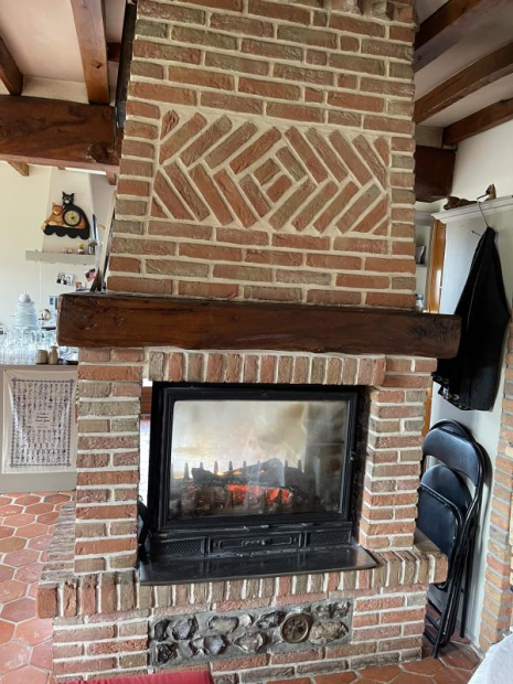 La pièce de vie est très spacieuse avec ses 56 m2 et très agréable avec son insert double faces, sa cuisine ouverte et son arrière cuisine.