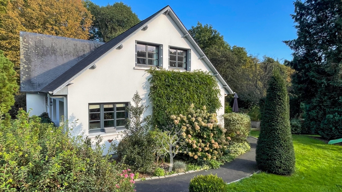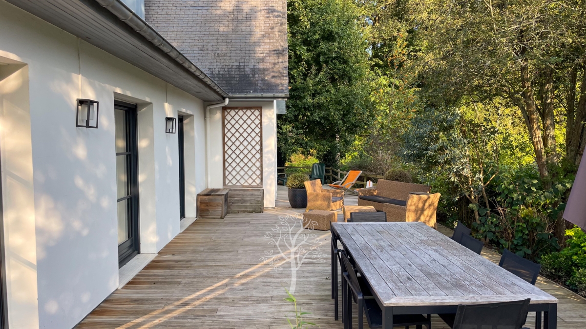 With its two levels, this house is ideal for a large family. You will find 5 bright bedrooms (possibility 6) and 2 bathrooms, offering everyone their own space. The ground floor consists of a welcoming entrance, a dressing room, a toilet, an office and a warm kitchen opening onto a dining area. The large living room, flooded with light thanks to its French windows, opens onto a sunny terrace, offering a breathtaking view of the wooded garden. It is the perfect place to create family memories, by the Godin insert fireplace, far from urban noise.