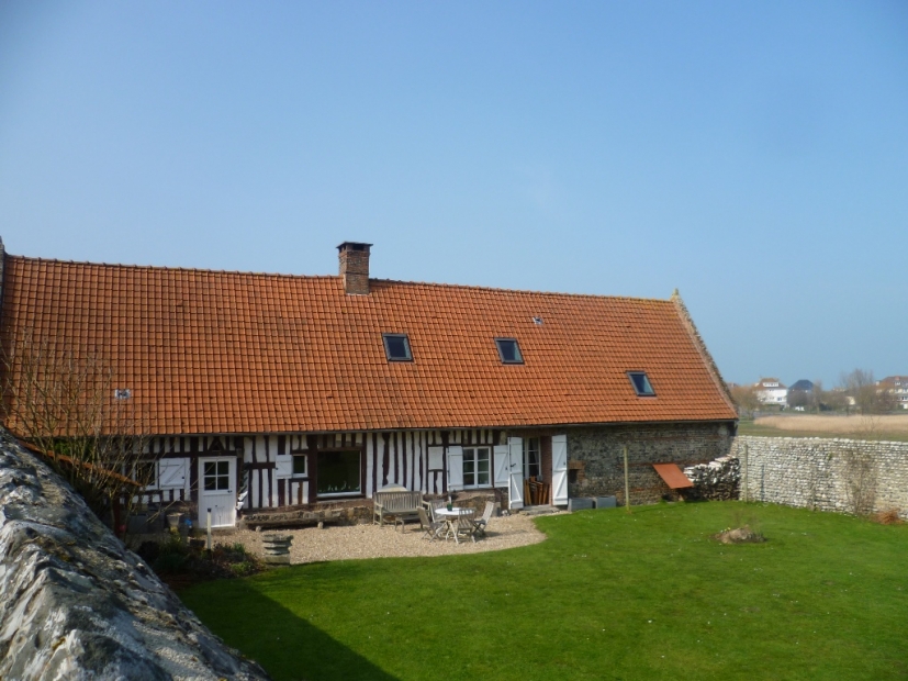 Entièrement et parfaitement rénovée, ses propriétaires ont su tirer un beau partie de cette longère de Normandie, sans altérer le caractère et l’authenticité de la bâtisse ancienne. Elégance et sobriété définissent la décoration intérieure. Passée la porte d’entrée, le visiteur aperçoit à travers les larges fenêtres et baies vitrées le jardin intime. La maison dans ses pièces principales est inondée de lumière. Les larges et hautes cheminées cauchoises composées d’un alliage de pierres blanches calcaires et de briques sont magnifiques. Durant l’hiver, le feu à l’âtre rend le salon très chaleureux. La dalle chauffante du sol du rez-de-chaussée apporte une douce chaleur économique et parfaitement diffusée. La cuisine ouverte sur la salle à manger est certes petite mais suffisante pour préparer des repas amicaux et familiaux, dans une ambiance très conviviale, idéale pour les retours de plage ou de pêche.