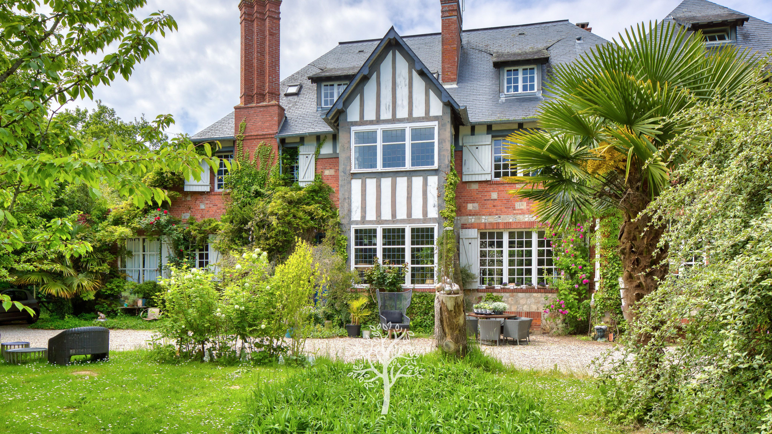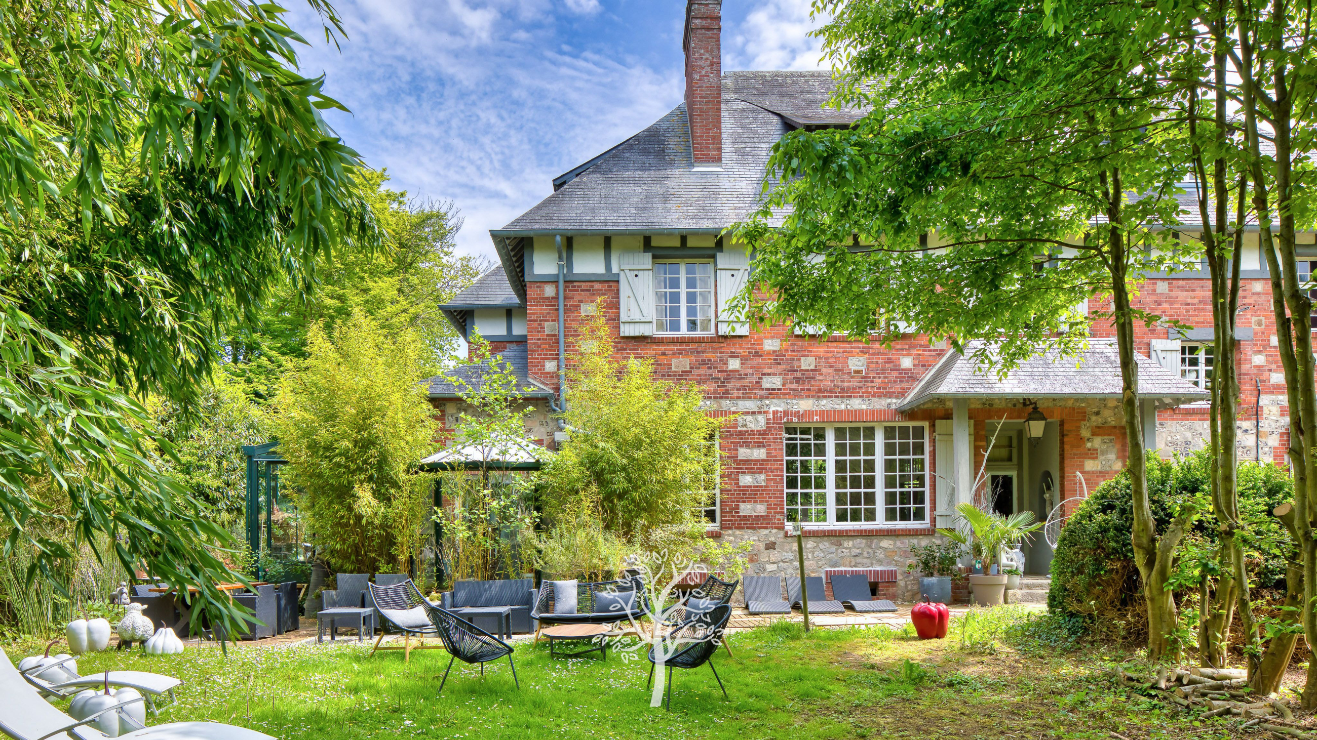 The house, with Anglo-Norman charm (brick and timber framing), offers a unique atmosphere blending authentic character with Balinese-inspired touches.