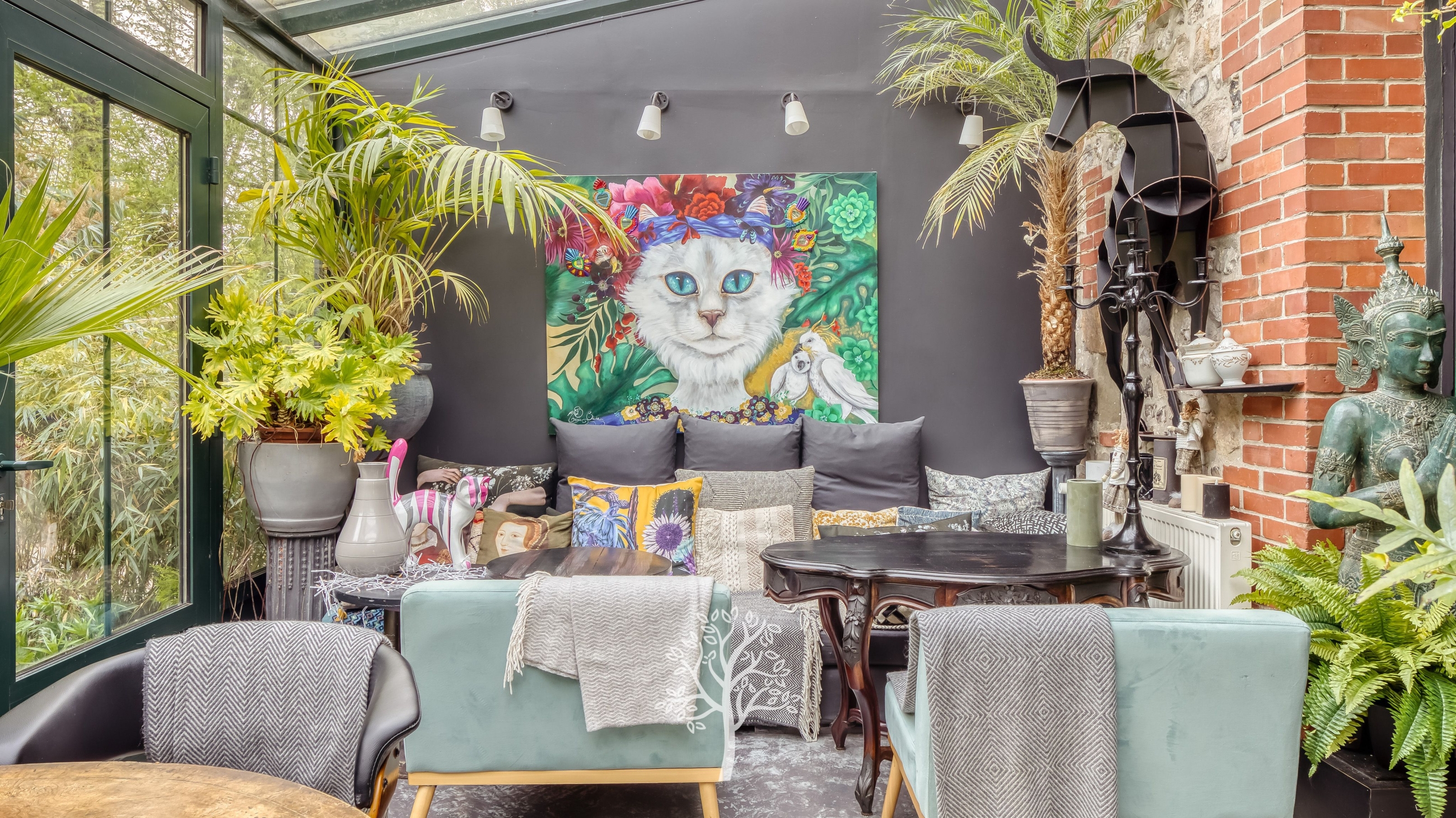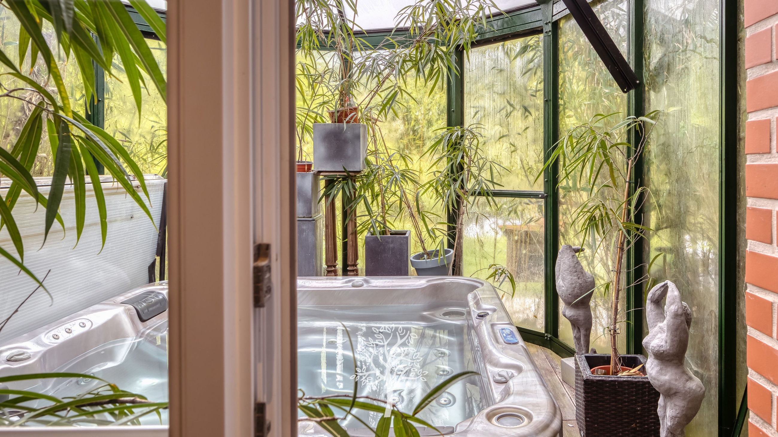 - a glass-roofed conservatory opening onto the garden.