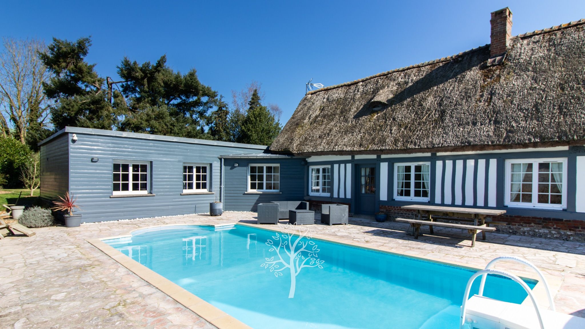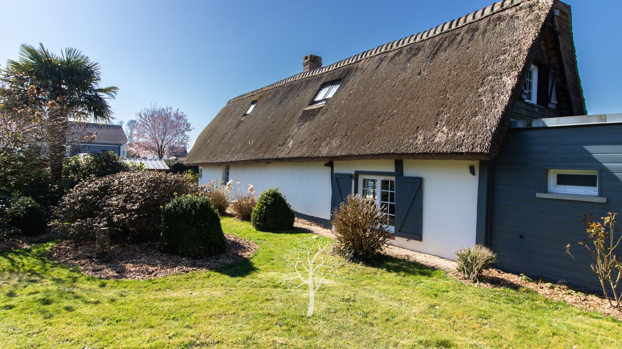 Just 5 km from Offranville, 6 km from Bacqueville, and 15 km from Dieppe, this farmhouse, topped with a thatched roof of flint brick and half-timbering, combines authenticity and comfort. Offering four bedrooms, including one on the ground floor, it offers single-story living, ideal for a primary or secondary residence. The ground floor consists of a large reception area: a living room with an open fireplace and a dining room with exposed beams, a large office, and a master bedroom with a shower room and dressing room. A kitchen, a bathroom, a boiler room/laundry room, and a room currently used as a storage space with a door leading to the garden complete the decor. Upstairs, three adjoining attic bedrooms will delight children. Its garden is a real asset, ideal for relaxation and convivial moments. It includes a large garage capable of accommodating 6 vehicles and two wooden buildings. Situated in a peaceful setting, the house enjoys easy access to the sea as well as Offranville's shops and amenities, ensuring a pleasant and functional living environment. More information is available on our website.