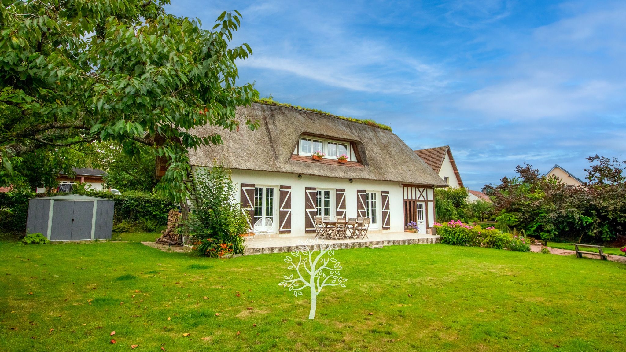 Leforestier Immobilier offers you this charming renovated thatched cottage, located in a peaceful and green setting. Combining the charm of the old with modern comfort, it consists of a cozy living-dining room with a wood insert that can be opened into a traditional fireplace, and two bright bedrooms.