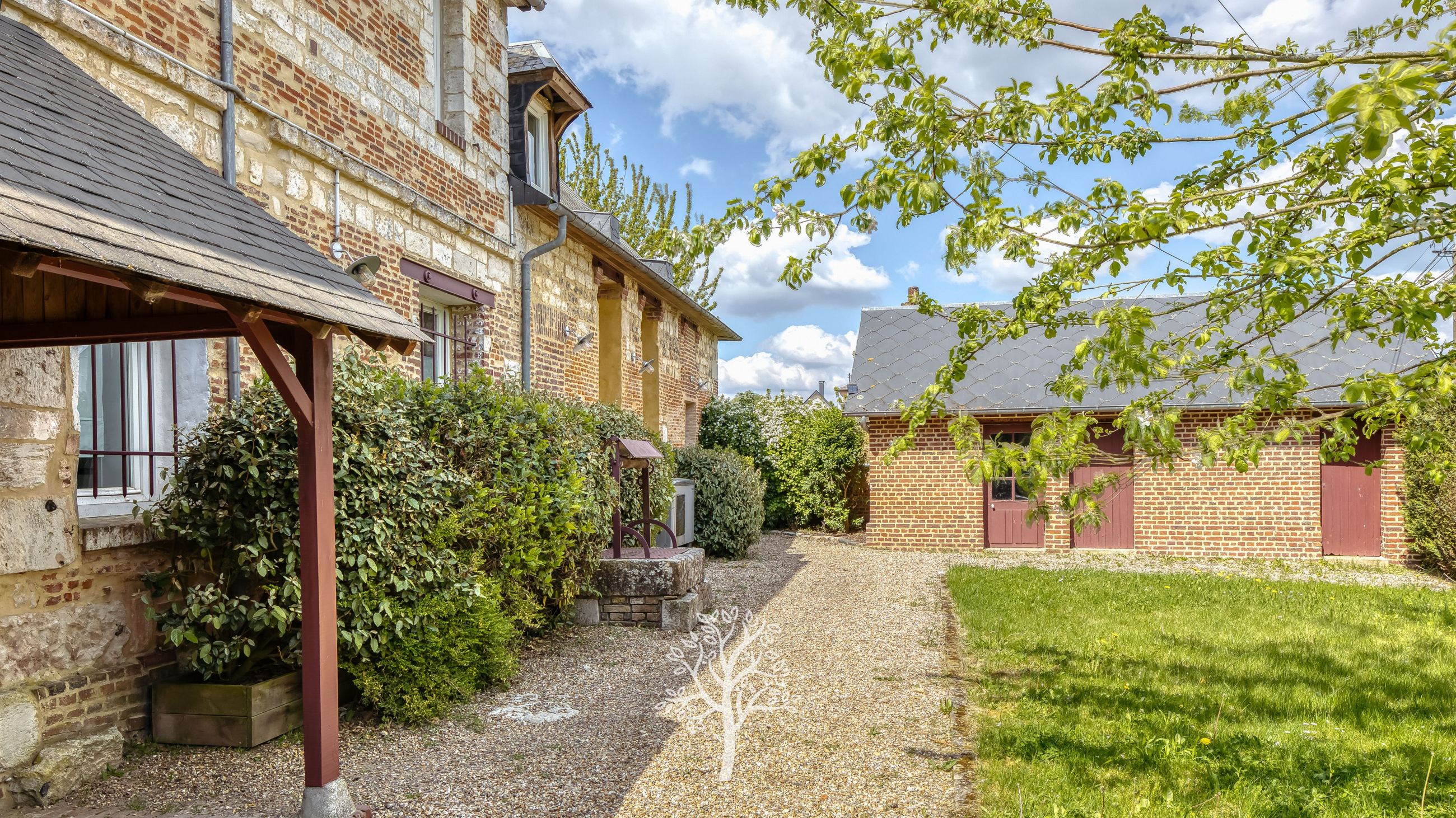 Old-world charm and careful renovation Located in the heart of the village of Hauville, in the Eure department, this renovated 19th-century former school offers approximately 231 m² of living space over two levels. The house has retained all its original charm with generous volumes, period materials and its historic staircase. On the ground floor you will find a fitted and equipped kitchen, a cosy living room, a dining room with a wood-burning stove and a bathroom. Upstairs, a large landing serves three bright bedrooms, an office, a toilet and an additional room with exposed roof timbers. This space could easily become a master suite, a playroom, a studio or a second living room. A versatile independent space The property also includes a 60 m² independent area with a treatment room, an office and sanitary facilities. With a separate entrance, it could suit a professional activity, a self-contained apartment, a guest house or a home-working space. Pleasant outdoor space and full amenities Outside, the property benefits from a wooded plot of about 1,000 m² with east/west exposure, several outbuildings (workshop, woodshed, etc.), a closed garage and several parking spaces. The house is equipped with a heat pump and a water softener. An ideal location and a lively village life School and bakery within walking distance, shops and middle school less than 5 km away, with quick access to the A13 toward Paris (1h30) and Deauville (50 min). A community space has also been created 1.5 km from the house, where you will find a grocery store, a café, gardening spaces, etc.