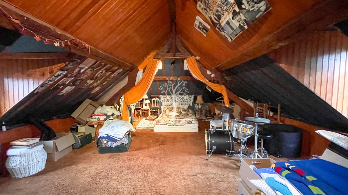 Upstairs, the distribution is classic family homes of the time. The parquet floors and fireplaces have been preserved in the large bedrooms. The large attic has given way to a family space used as a music room, library... Smaller bedrooms are a delight for small children who come on vacation by the sea. Adjoining, the former double garage is became the owner's paint shop. It represents an interesting potential for a single-storey bedroom, summer living room, etc.