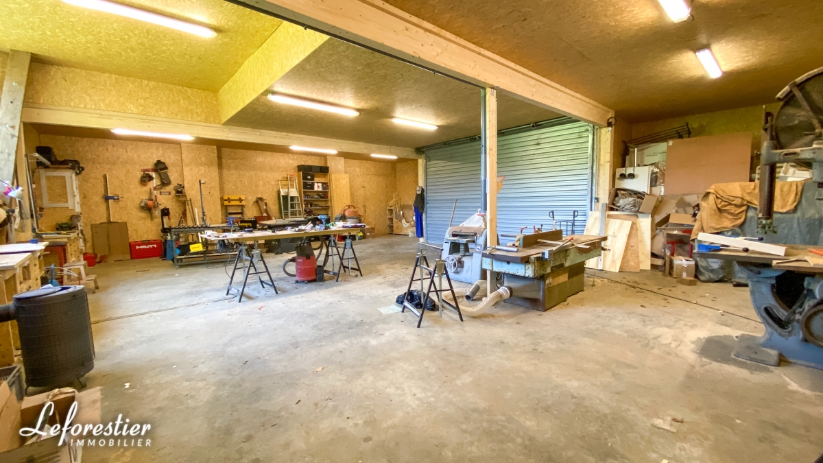 This originally large agricultural shed is divided into 3 spaces. A storage space for maintenance equipment, tractor and other machinery, a wood storage space and a space that has just been created, a large workshop! For a collector of vintage cars, it is equipped with an electric roller shutter and can easily house all types of vehicles in complete safety. As in all buildings, the electricity and water networks are present. The place is closed and can be heated in winter. The roof was completely redone and reinforced in 2015 on the 600m2 of roof, all in natural slate. -