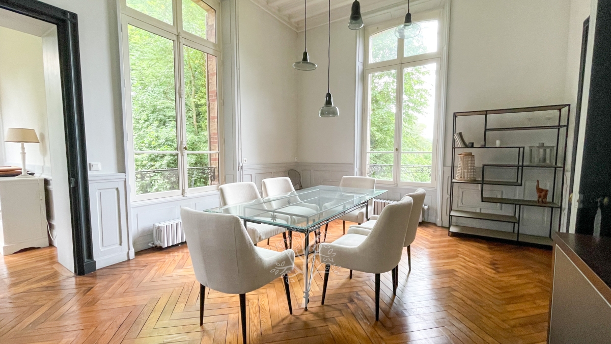 Built at the beginning of the 20th century in a remarkable style of elegance, the building is proud and majestic. Bringing a soft and charming style to the building, the brick walls are crowned with earthenware. At the time of the Universal Exhibition of 1900 buildings like this were built by notables wishing to build a residence unlike any other, here is a fine example.