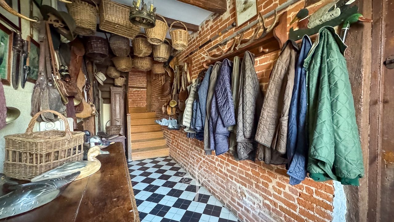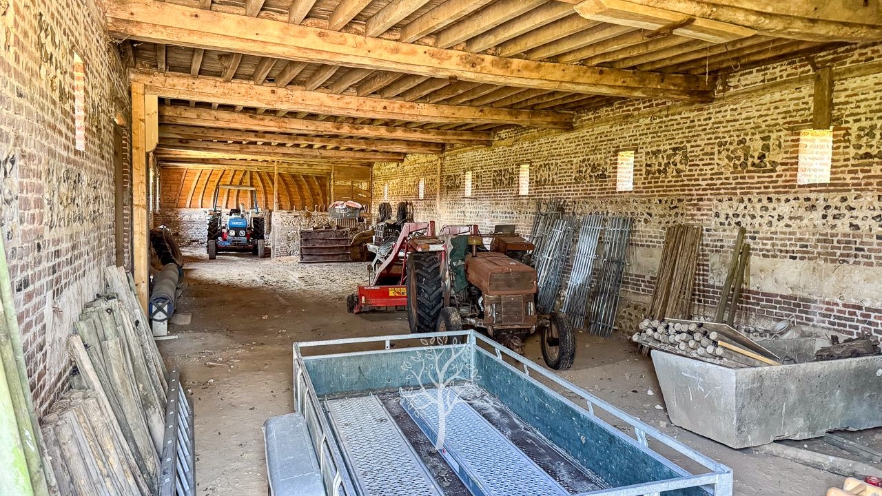The former farmhouse kitchen, currently used as a garage, still houses a majestic fireplace. This space offers great potential for recreating an authentic and convivial kitchen.