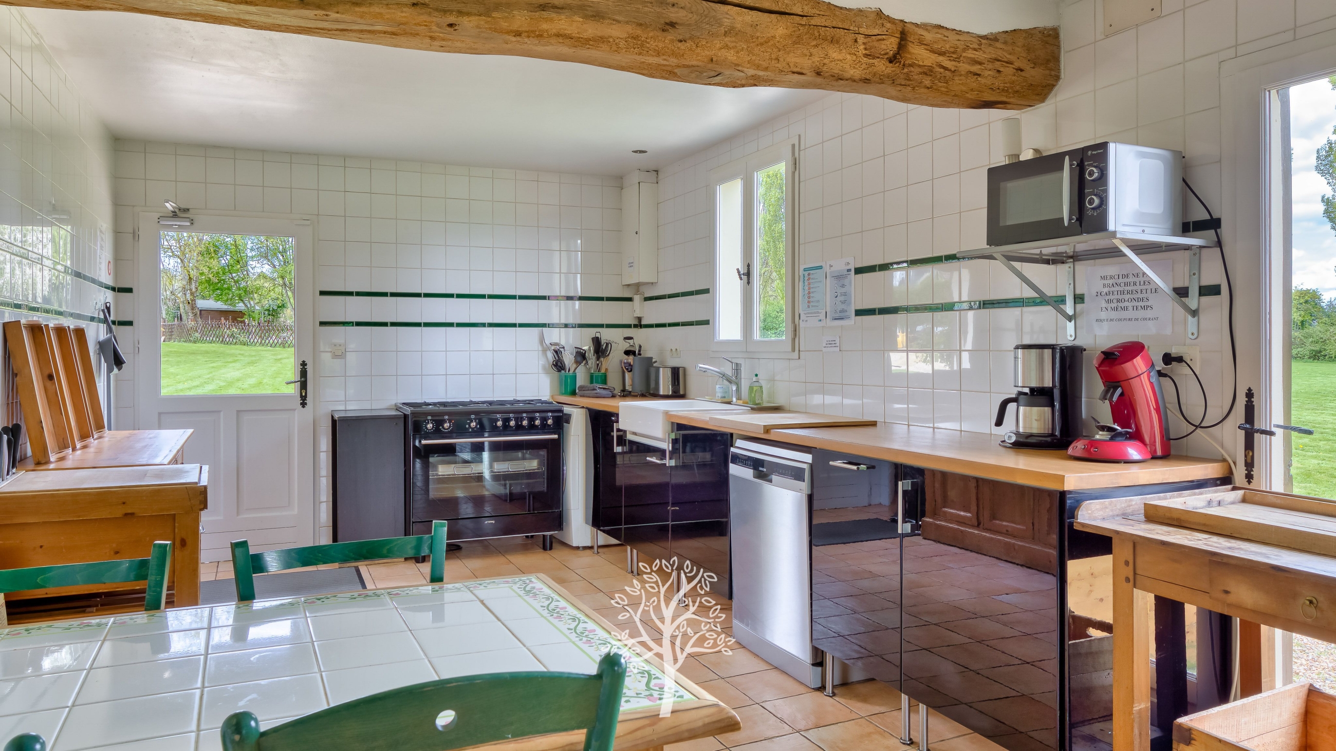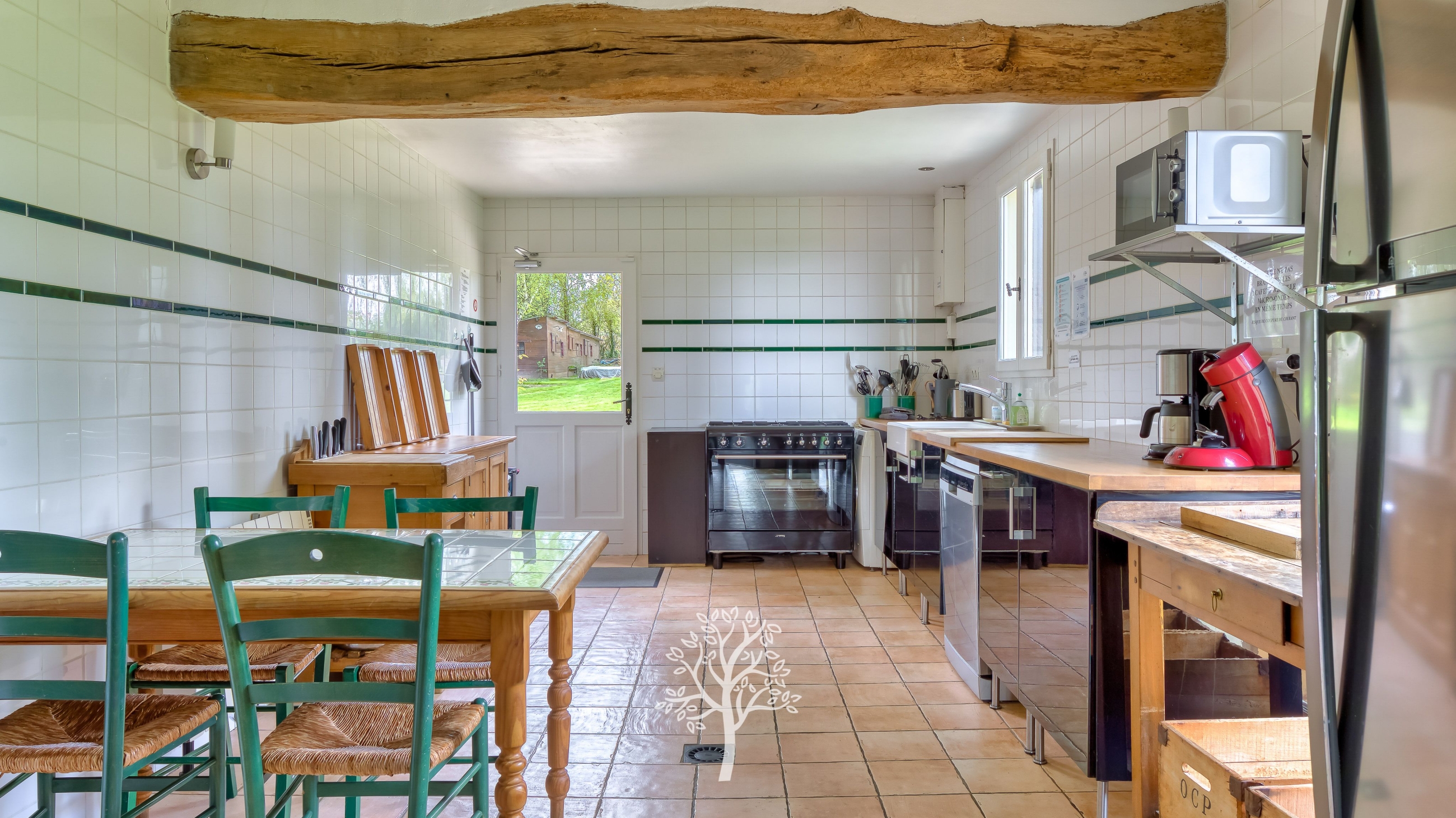 La cuisine spacieuse et parfaitement équipée, conçue pour un usage intensif voire professionnel, complète cet espace de vie.