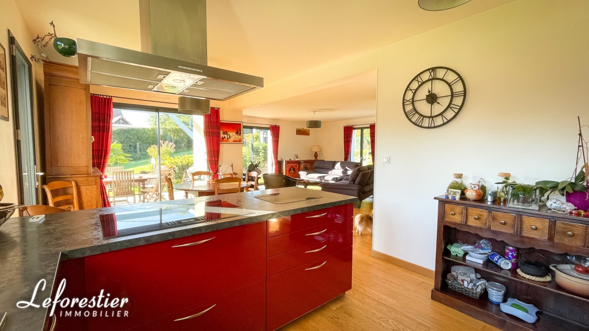 Les grands espaces de vie, la cuisine ouverte donnent un aspect pratique et chaleureux à cette maison.