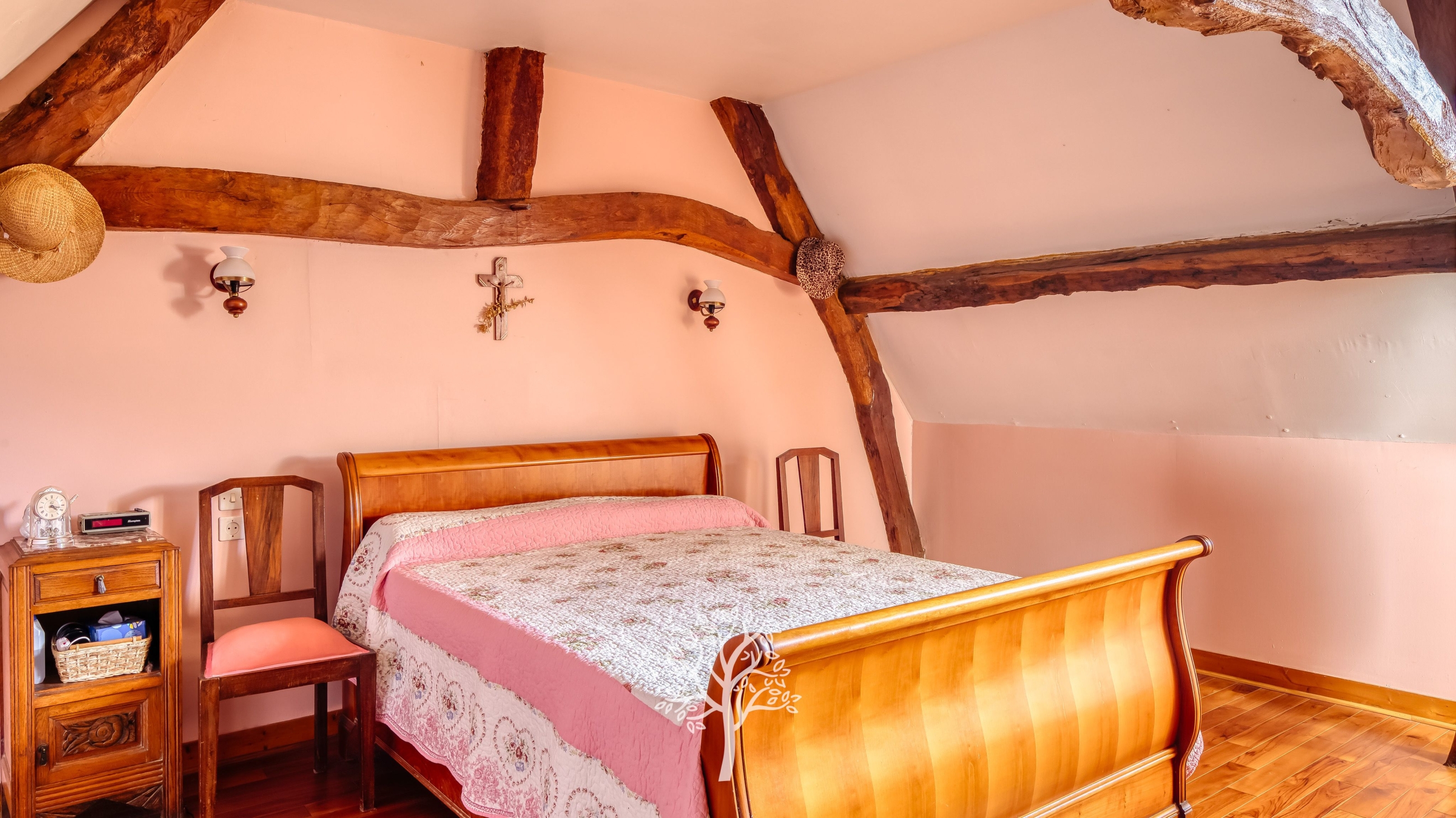 L’habitation se compose de cinq chambres, dont une au rez-de-chaussée, permettant une vie de plain-pied si nécessaire.