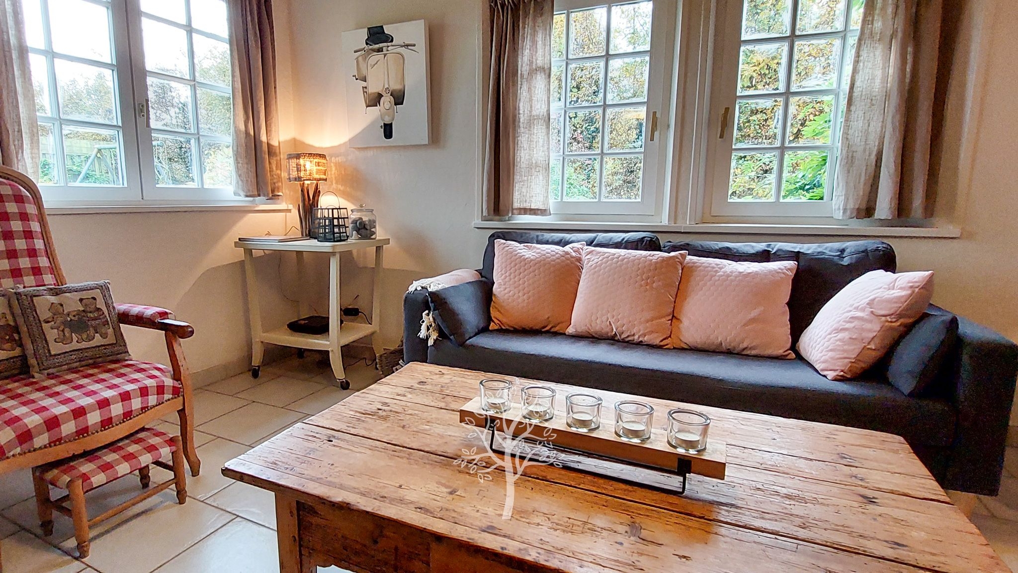 Implantée sur un terrain plat, clos et joliment arboré de pommiers, exposé plein sud, la maison offre un cadre bucolique et paisible, idéal pour se ressourcer.