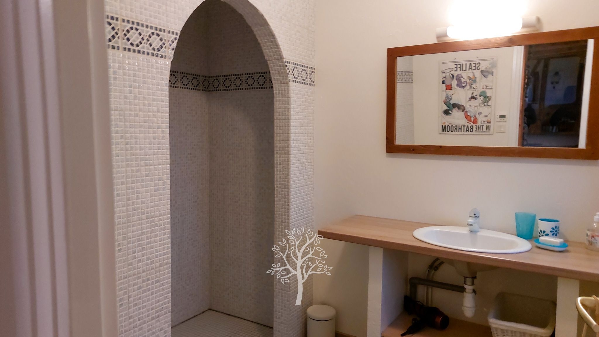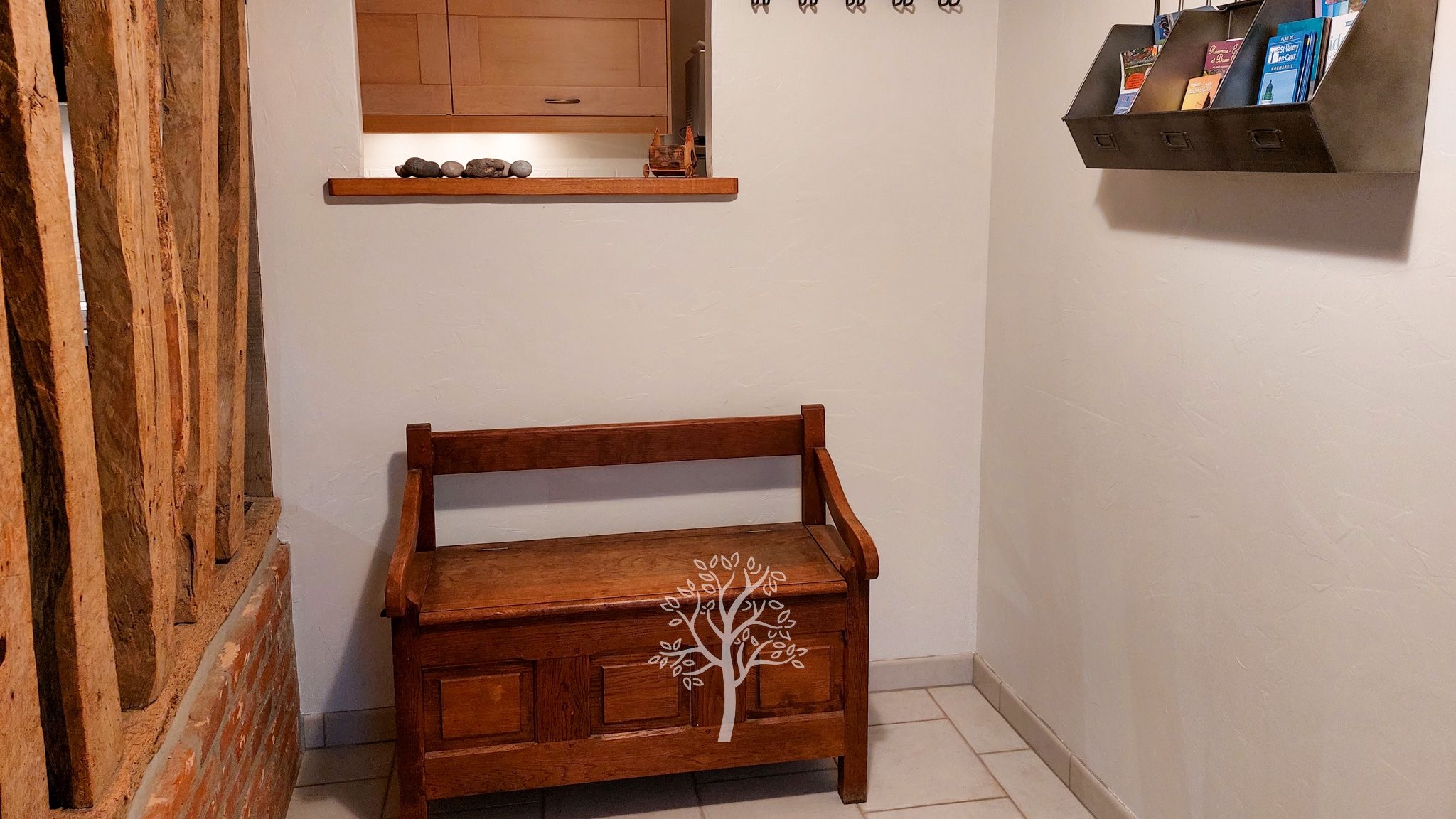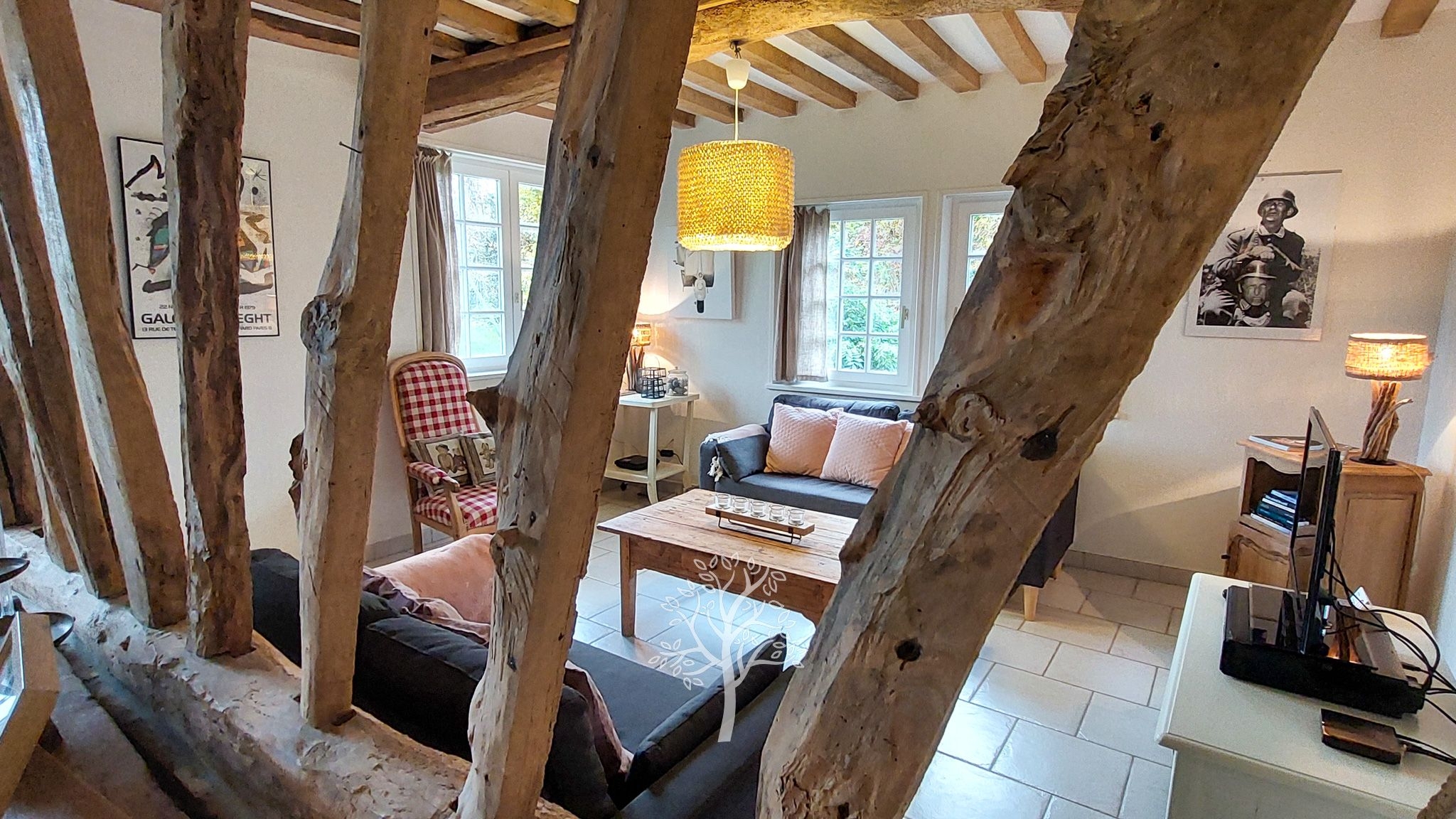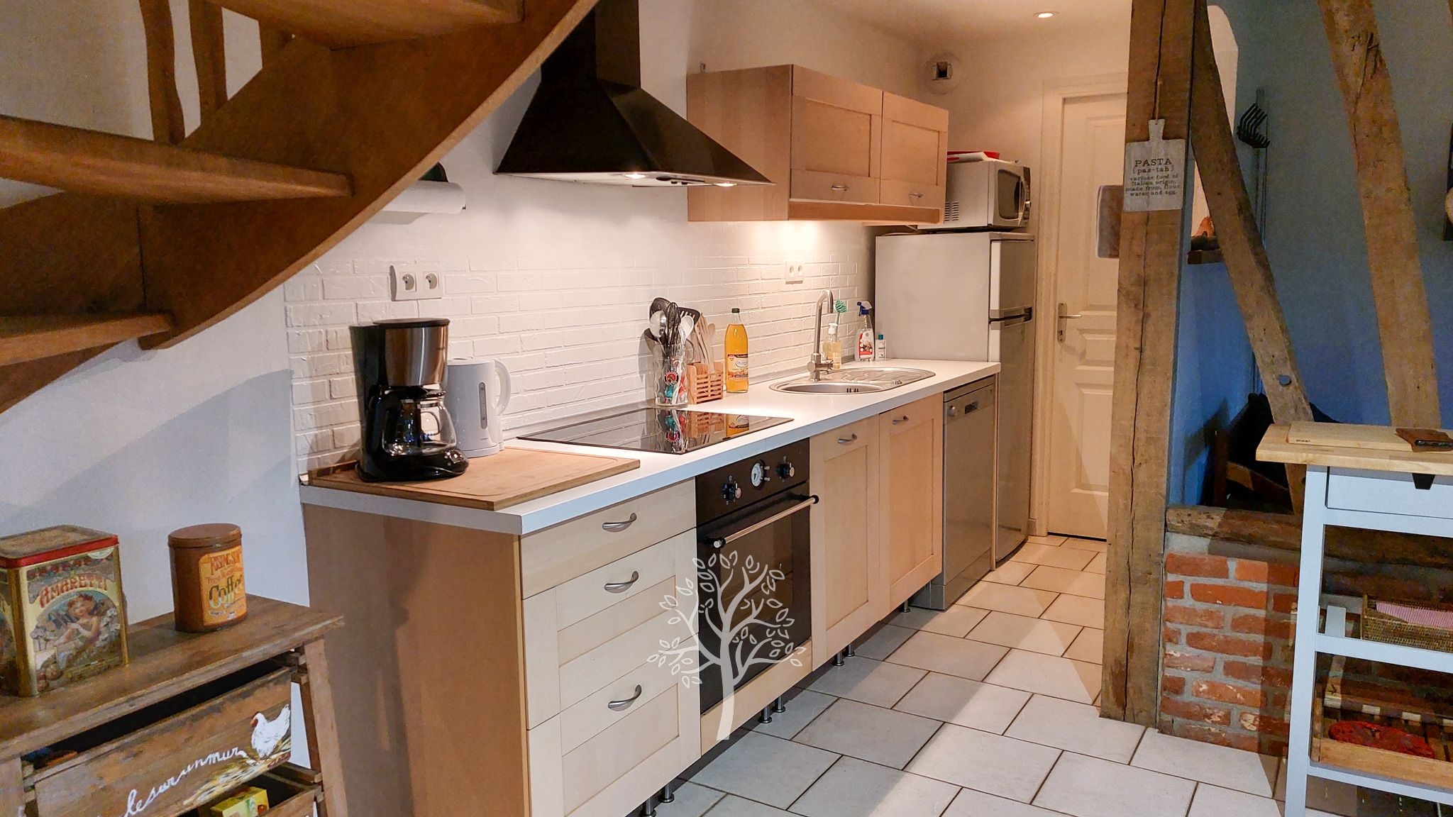 Le charme et l’authenticité ont été soigneusement préservés : entrée, pièce de vie chaleureuse avec colombages apparents, cuisine aménagée et ouverte, arrière-cuisine avec buanderie et accès extérieur, salle d’eau. Un conduit existant permet l’installation d’un poêle à bois pour encore plus de convivialité.