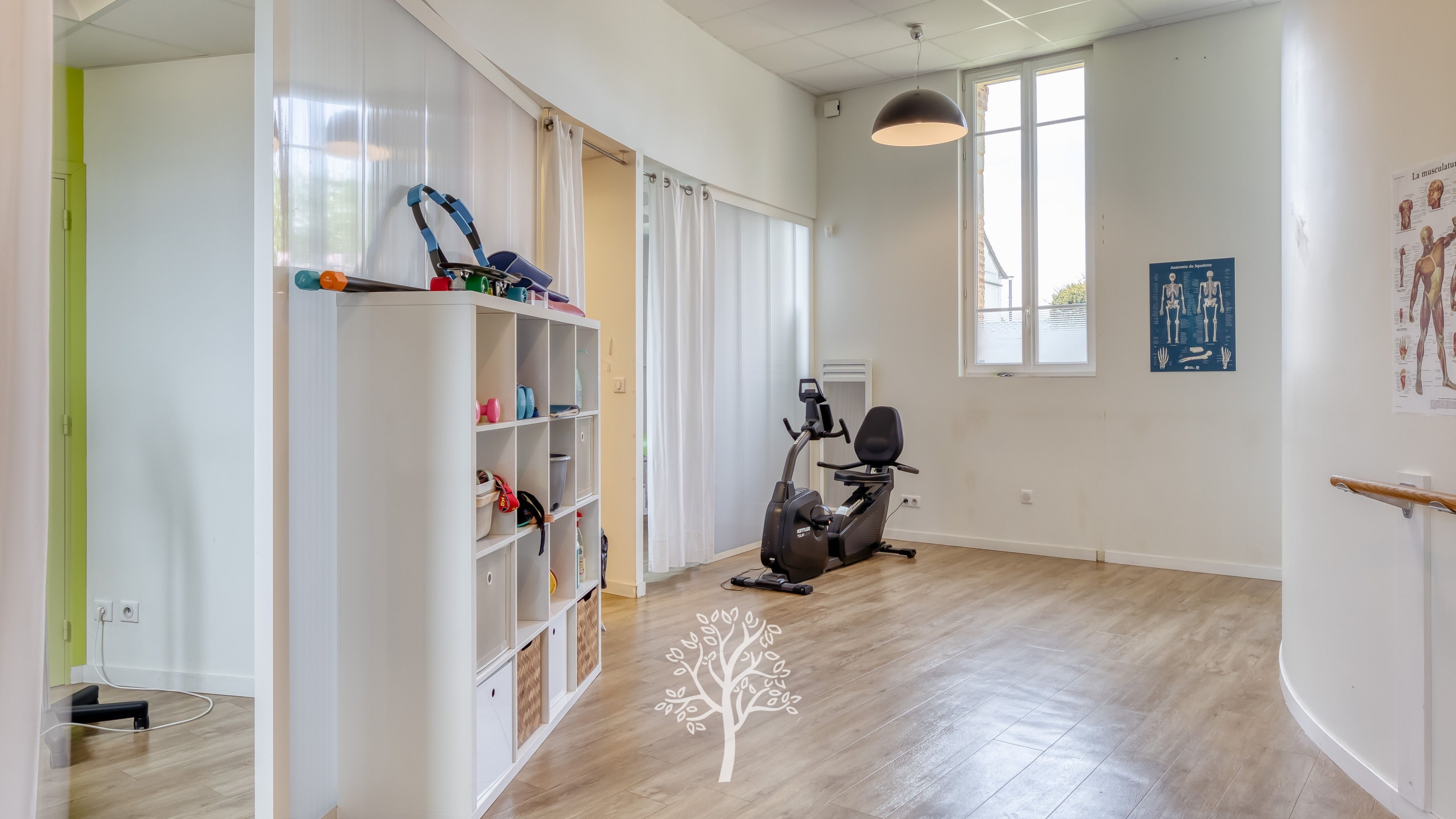 La propriété dispose également d’un espace indépendant de 60 m² avec salle de soins, bureau et sanitaires. Accessible par une entrée séparée, il peut convenir à une activité professionnelle, un appartement indépendant, une maison d’amis ou un espace de télétravail.