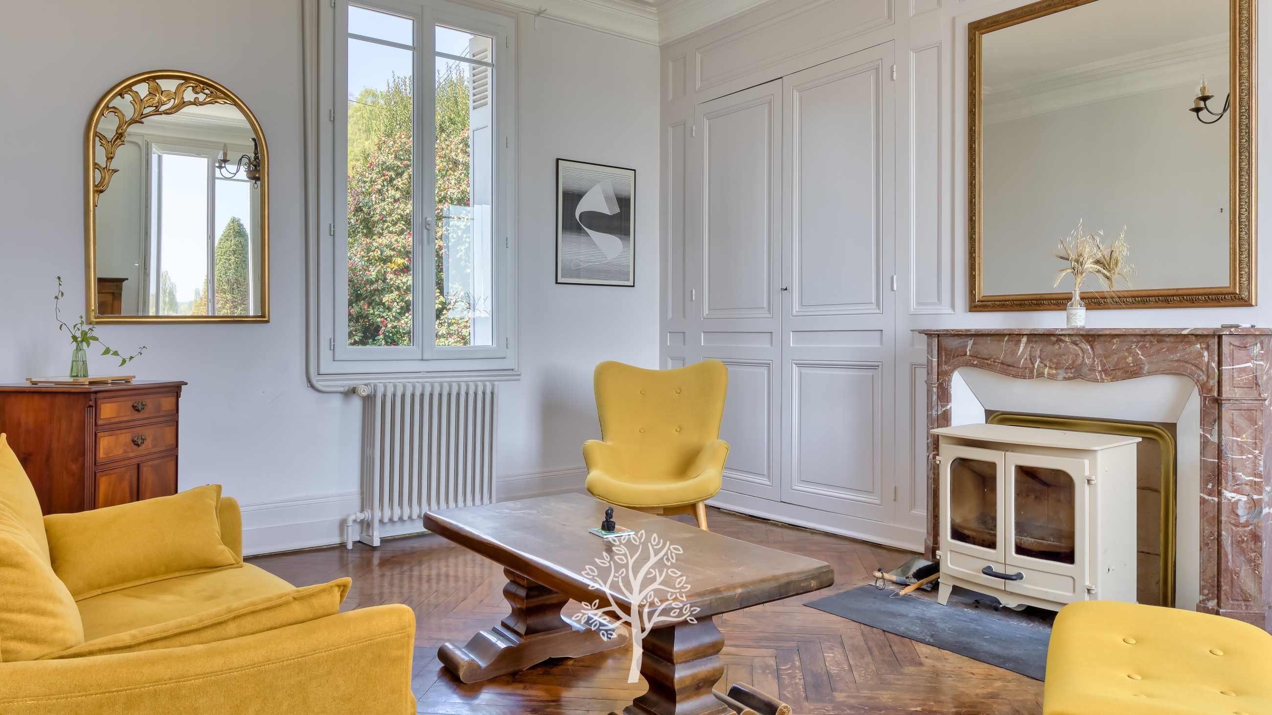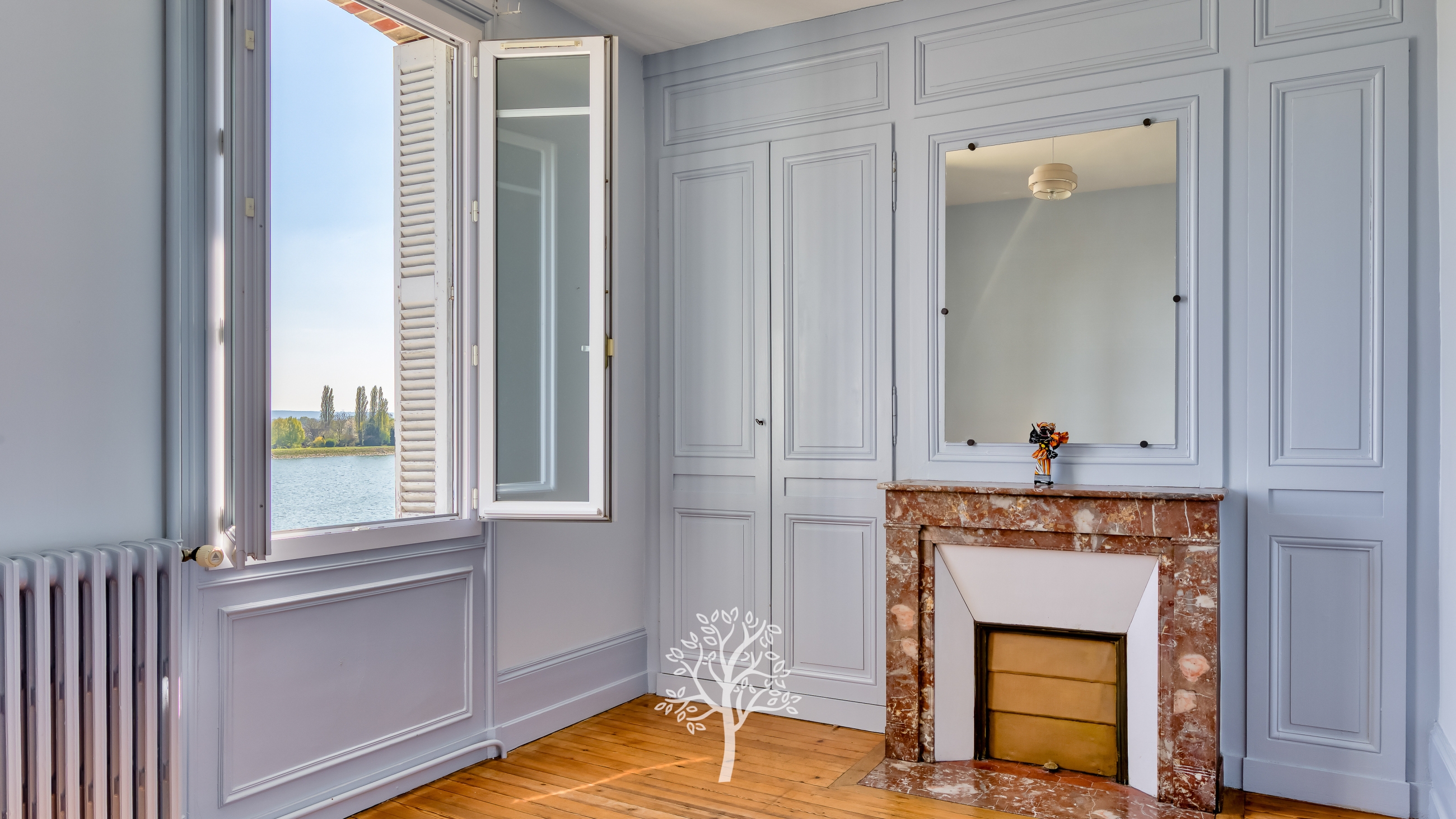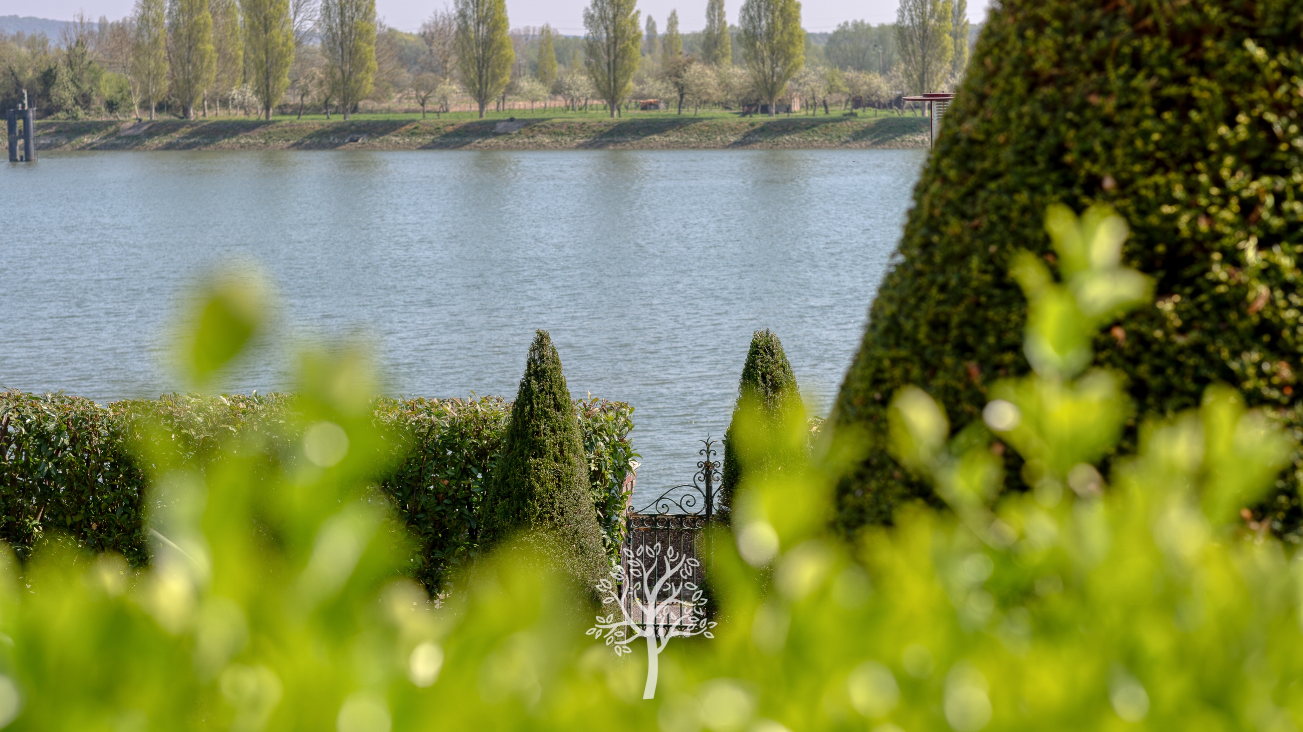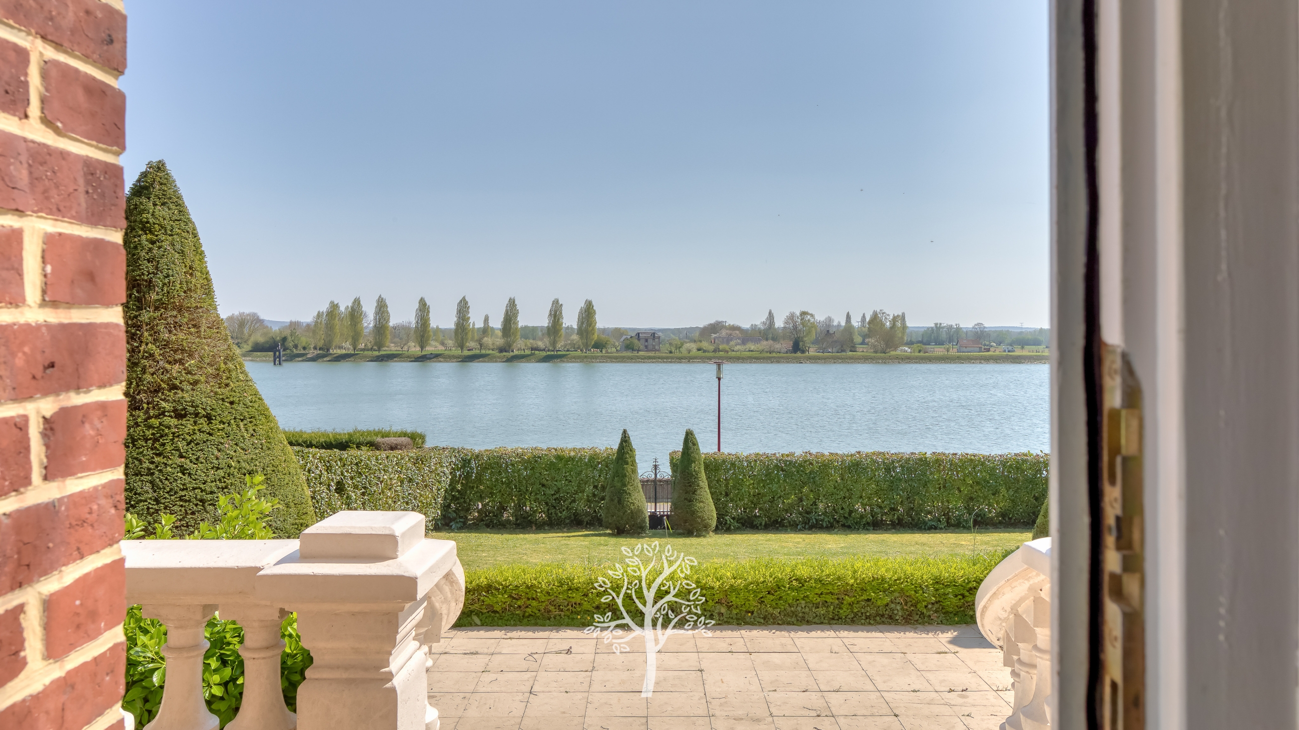 À l’extérieur, le charme opère immédiatement. Le jardin de 2 500 m², magnifiquement arboré et planté de nombreux arbres fruitiers, offre une atmosphère bucolique propice à la détente. Une vaste terrasse orientée plein sud permet de profiter pleinement de la vue dégagée sur la Seine.